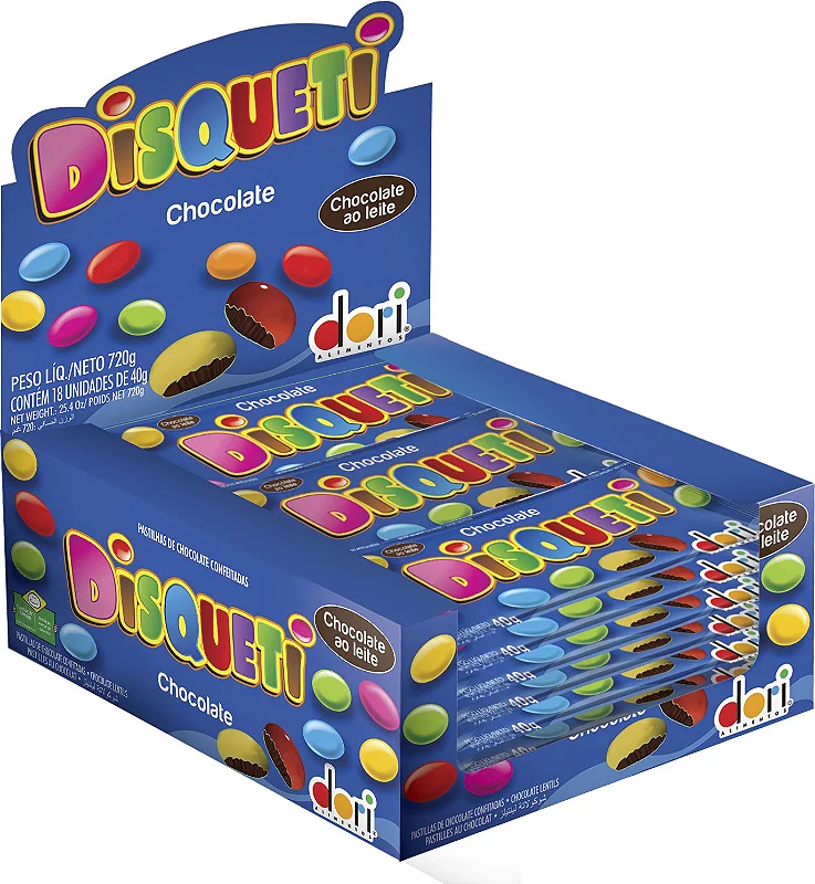 DISQUETI CHOCOLATE CONFEITADO DORI 18 UNIDADES DE 40G